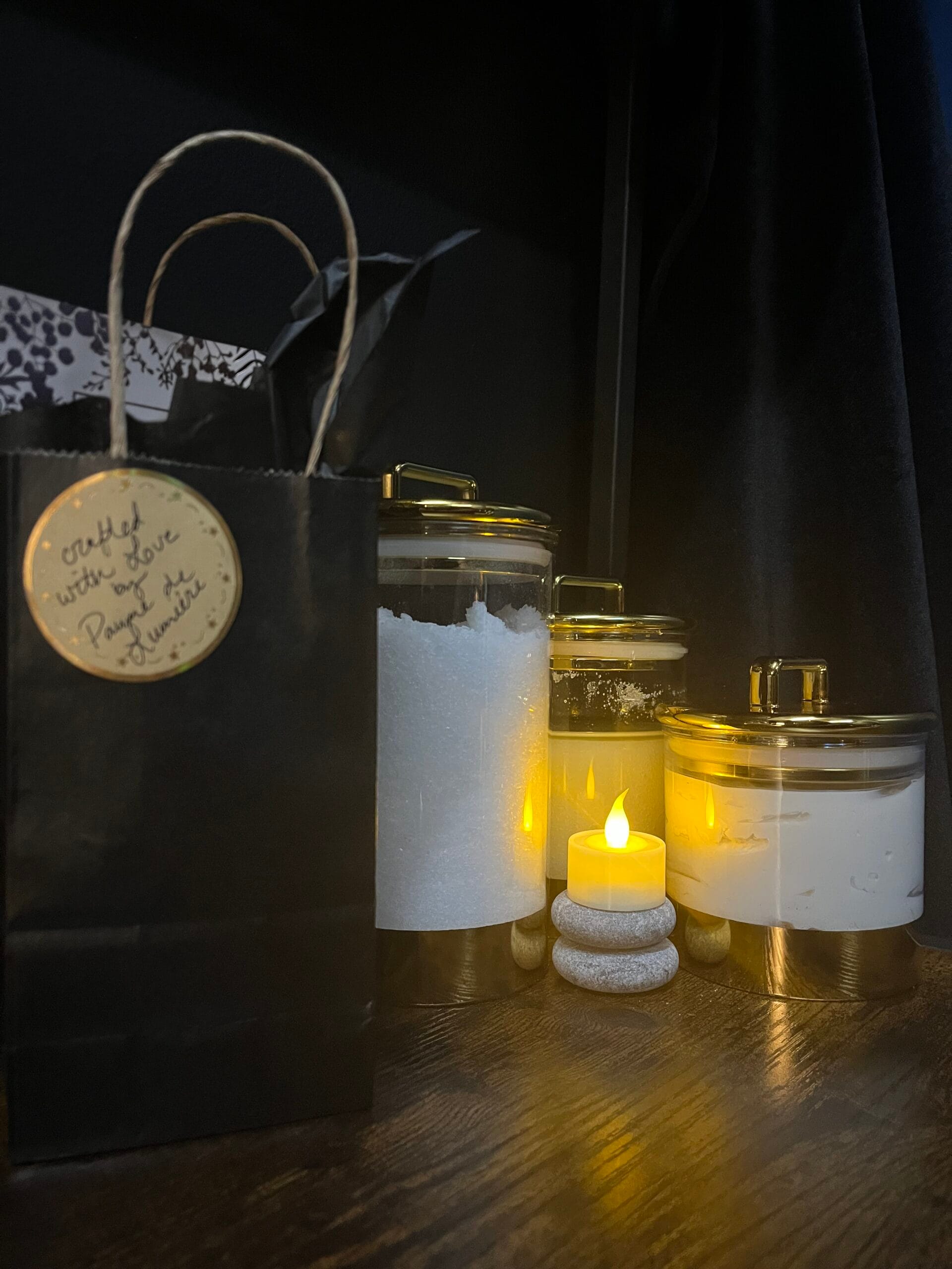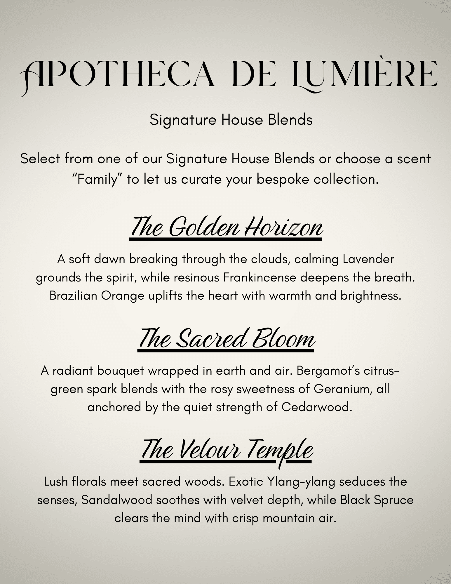 The Apotheca de Lumière is a corner of curated treasures where soaking salts, body butters, sugar scrubs and body oils are hand-crafted with care to extend your wellness beyond the table. Purchase products individually at your service or indulge in L’Exclusif Services to experience the full ritual of crafting your products, having them incorporated into your personalized intuitive bodywork, and packing them gently to follow you home into the quiet moments of daily life.